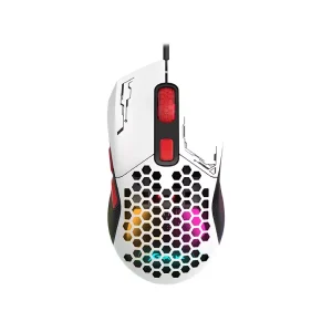 Souris gaming wireless avec coques interchangeables et design alvéolé léger. Batterie rechargeable et précision jusqu'à 7200 DPI pour une liberté totale.