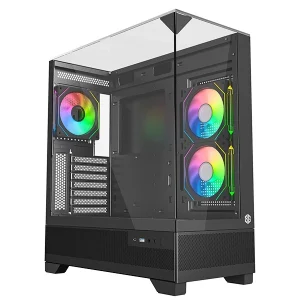Boîtier PC style aquarium avec vue panoramique en verre trempé. Inclut 3 ventilateurs ARGB. Le design luxe accessible à tous les budgets.