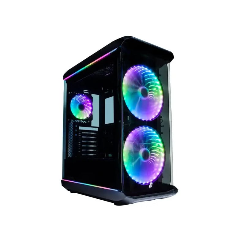 - Double Verre Trempé : La façade et le côté sont vitrés pour offrir une vue imprenable sur les anneaux lumineux RGB des ventilateurs, créant un effet “waouh” immédiat.