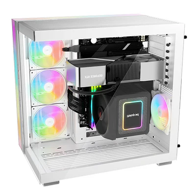 - Vitrine Panoramique “Showcase” : Profitez d’une vue ininterrompue sans pilier d’angle. La bande LED ARGB géante de 1,33 mètre qui ceinture le boîtier offre un spectacle lumineux continu et fluide.