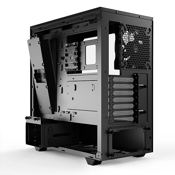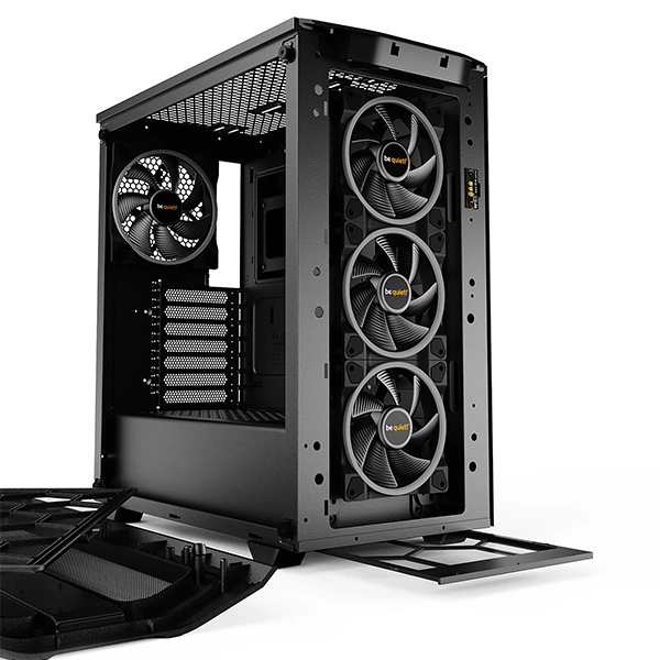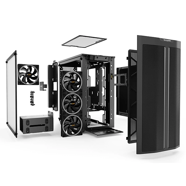 - L’ADN Silencieux : C’est un “be quiet!” avant tout. Malgré sa façade en Mesh haute performance pour le flux d’air, il conserve une isolation acoustique et une conception anti-vibrations pour rester discret.